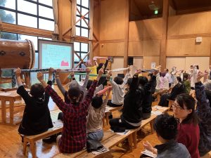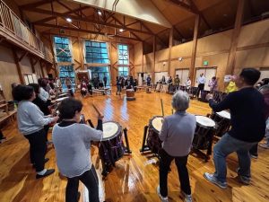 鼓童文化財団による和太鼓フィットネス「エクサドン」では、子どもから大人まで太鼓の音を重ね合い、参加者の皆様に自然と笑顔が溢れ大盛況となりました。