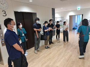施設見学 新しく整備された両津病院の相談室や病棟を見学。相談室の配置やプライバシーへの配慮、入退院支援の流れなど、現場の構造や工夫について理解を深めました。